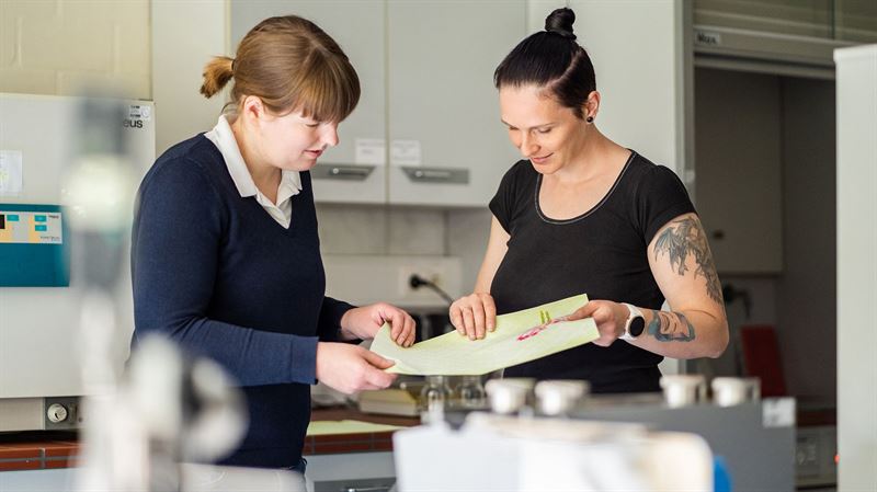 Ibland lägger pusslet sig själv. Vi hade inte kunnat konstruera ett bättre case för att visa hur hållbarhet, innovationskultur, medarbetares engagemang och hur vi lever våra värderingar tillsammans kan uträtta storverk. Det handlar om hur Britta Hinnemann, processingenjör, och Maren Potthoff, laboratoriespecialist, vid konverteringsenheten i Bramsche i nordvästra Tyskland tog fram ett växtbaserat bindemedel till Dunicel®-sortimentets dukar och tabletter.